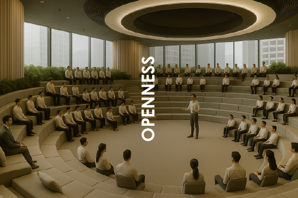 The O represents Opennessopenness to society and a commitment to building a workplace that plays an active role in shaping the world around it.